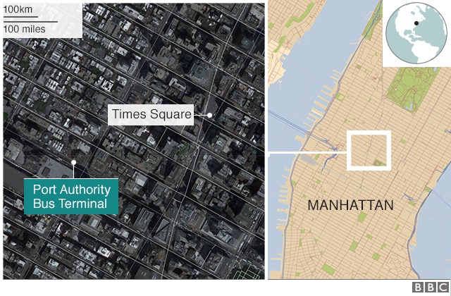 A man is being held after an attempted terror attack at America's biggest and busiest bus terminal, officials say.