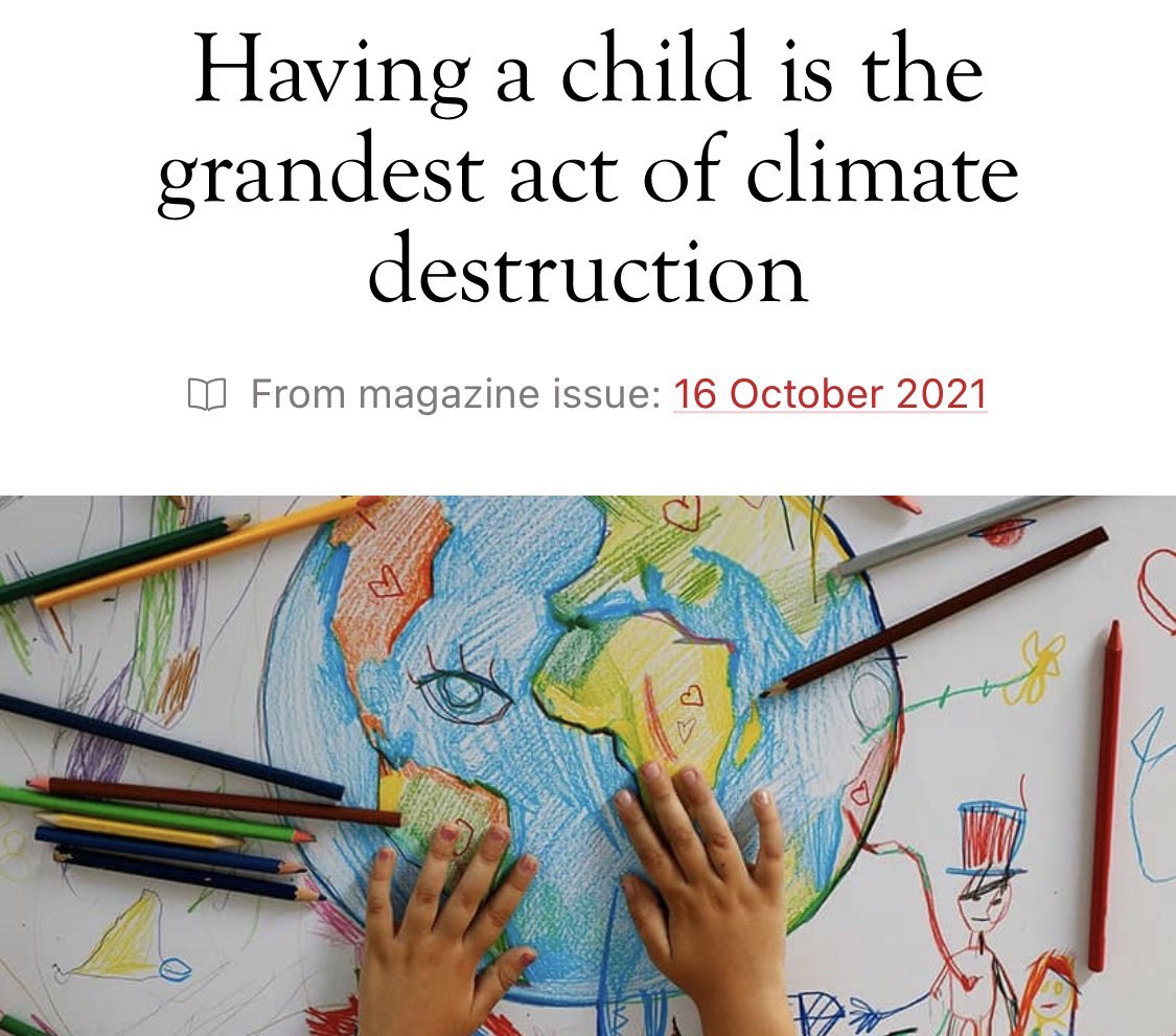 It's an extreme conclusion but the basis isn't totally unsound. Unless people start going primitive or Amish with technology and fuel and stuff, a person is going to contribute to worsening climate conditions. There are too many people in the world. I don't think that having a couple kids is bad, but having 12 that you can't afford is stupid. It definitely wasn't an issue when hardly anyone lived past 50 and kids had a much higher mortality rate.